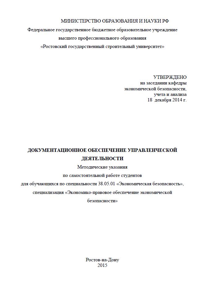 Излагается содержание самостоятельной работы студентов по дисциплине «Документационное обеспечение управленческой деятельности». Задания для самостоятельных занятий составлены в соответствии с программой курса. Они включают теоретические вопросы для подготовки к зачету, темы рефератов и практические задания, связанные с составлением и оформлением документов. Рассчитаны на обучающихся очной и заочной форм обучения.