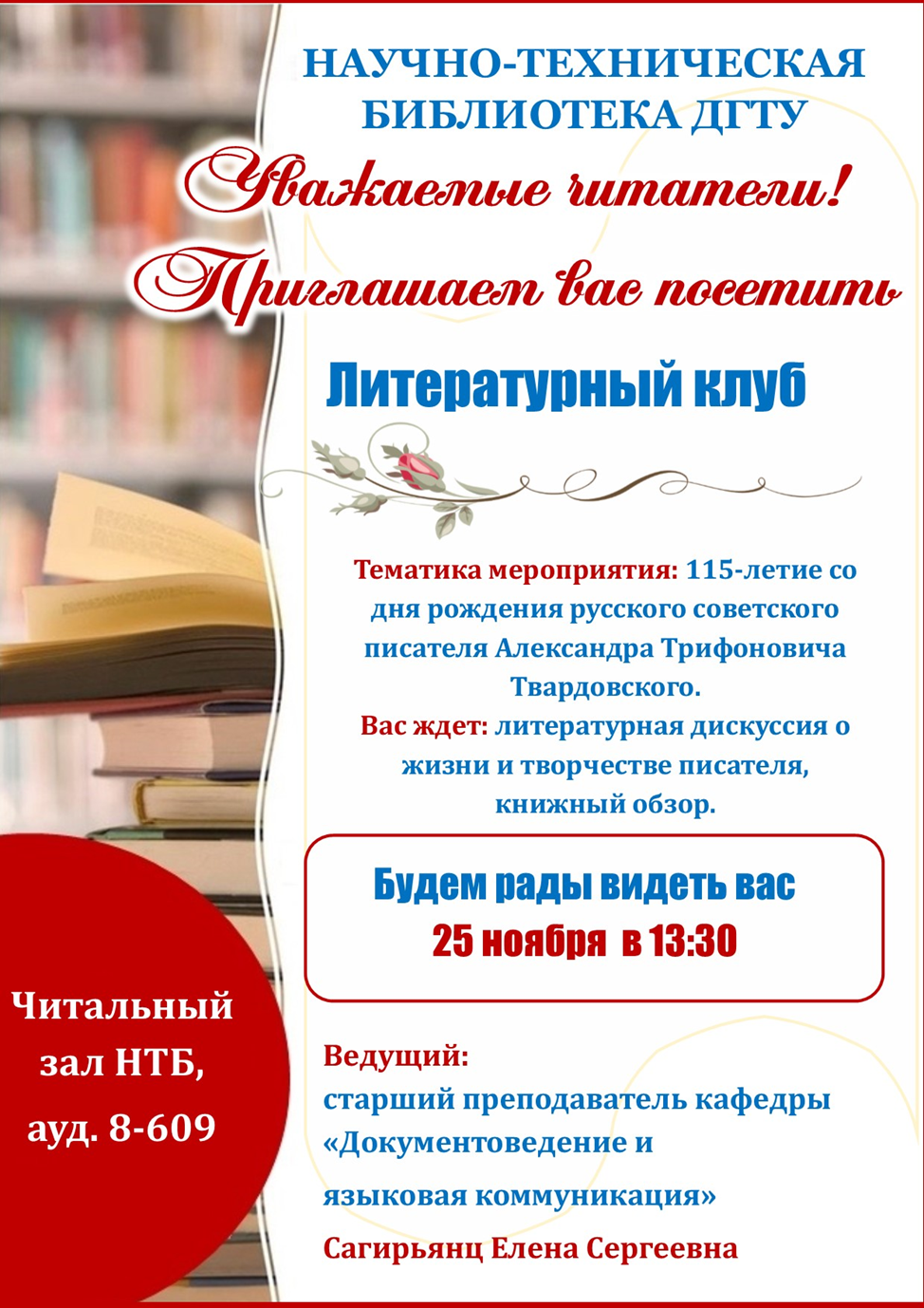 Ждем вас в Литературном клубе библиотеки ДГТУ!