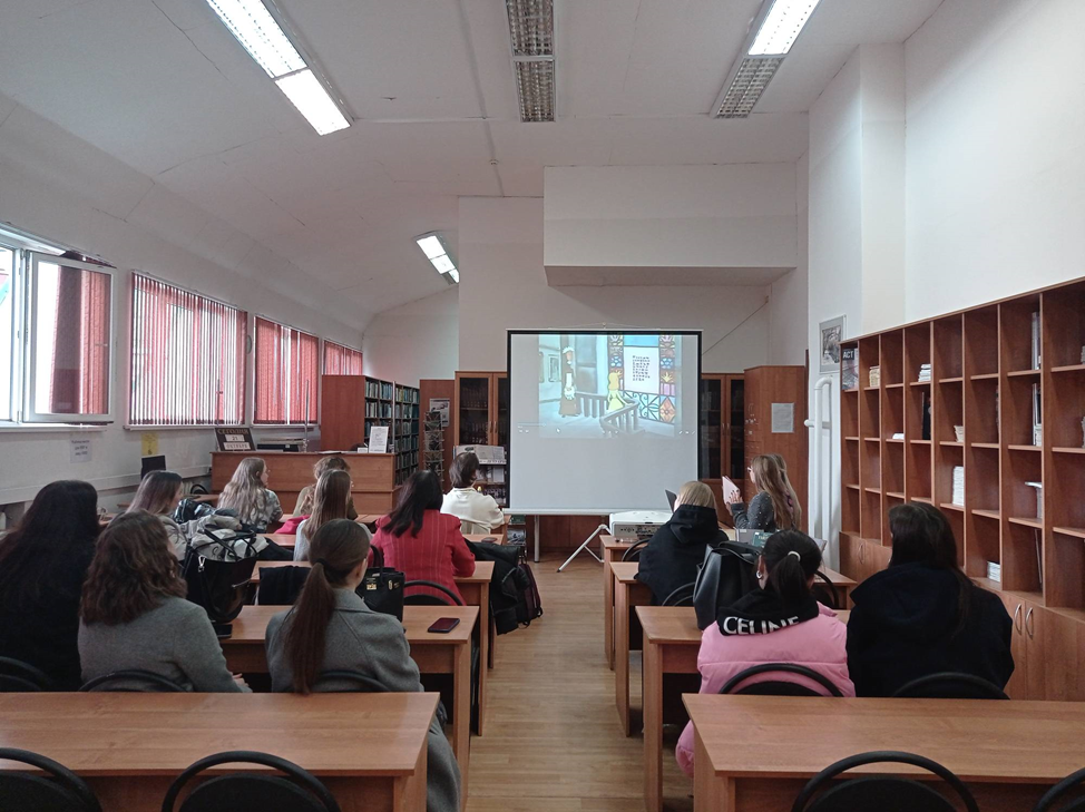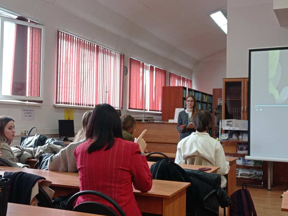 21 октября 2025 г. в читальном зале библиотеки (8-609) было проведено мероприятие совместно с кафедрой «Мировые языки и культуры» и студенческим клубом «English club», посвященное творчеству ирландского писателя и драматурга Оскара Уайльда. Старший преподаватель Рудь Елена Евгеньевна и студенты обсудили на английском языке сюжет и образы героев одного из известных рассказов автора – «Кентервильское привидение», а также посмотрели его советскую экранизацию. Библиотека по теме мероприятия подготовила книжную экспозицию из своего фонда и пригласила посетить абонемент художественной литературы (7-104), чтобы получить понравившиеся издания на дом.