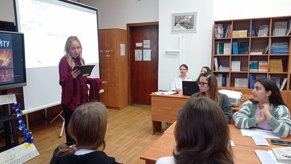 10 декабря 2025 г. в читальном зале библиотеки (8-609) состоялся «Вечер живых строк», который студенты факультета «Социально-гуманитарный» организовали по личной инициативе при поддержке декана Светланы Викторовны Былковой.