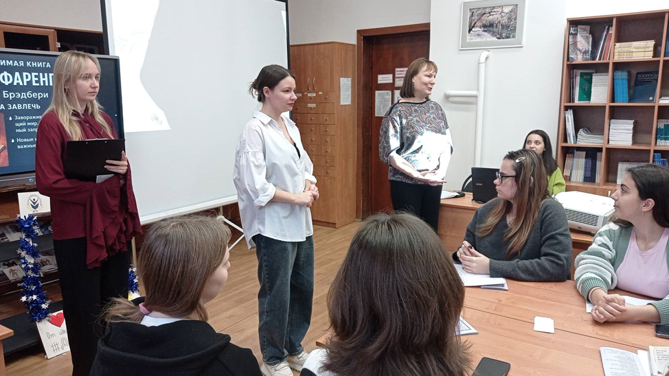 В ходе мероприятия докладчики вечера представили презентации, с восторгом рассказав о любимой книге и поделившись своим мнением по поводу сюжета и героев выбранного произведения. Студенты, объединившись в команды, также поучаствовали в увлекательной викторине по известным произведениям мировой литературы, подведя итоги которой члены жюри выбрали победителей и торжественно вручили им призы – книжные издания!