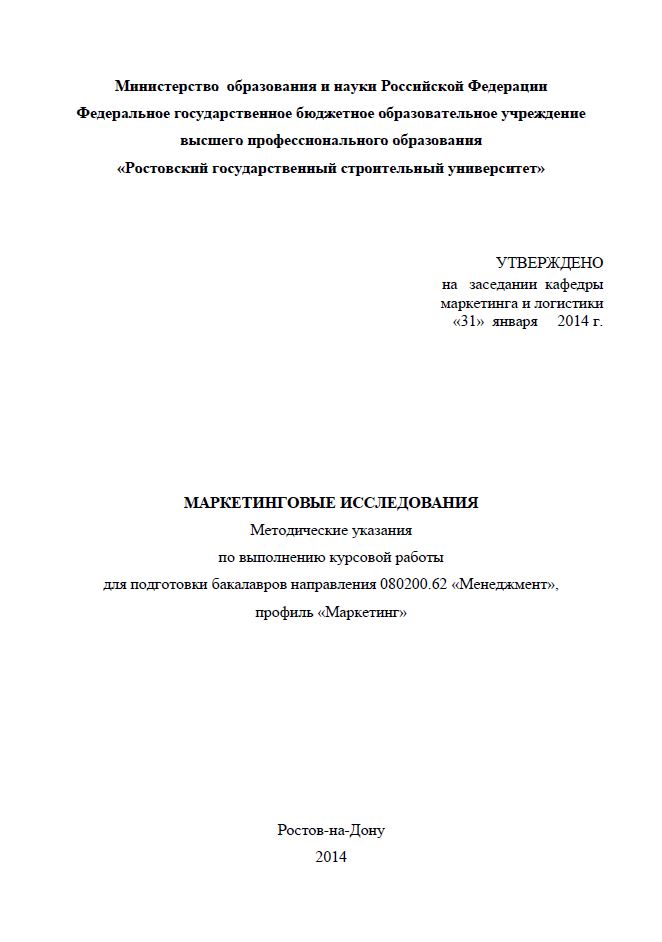 Разработаны в соответствии с учебным планом направления 080200.62 – «Менеджмент», профиль «Маркетинг» и программой дисциплины «Маркетинговые исследования».