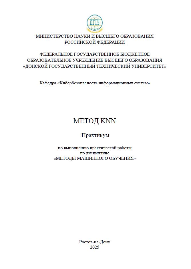 Кратко изложены теоретические вопросы, необходимые для успешного выполнения практической работы по теме «Метод KNN», рабочее задание, примеры решения задач и задания для самостоятельного решения, контрольные вопросы для самопроверки.
