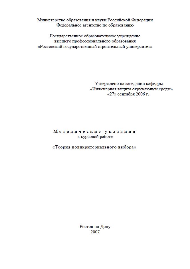 Предназначены для магистров техники и технологии направления подготовки 553500 «Защита окружающей среды», программа подготовки 553504 «Охрана воздушного бассейна» для выполнения курсовой работы и проведения практических занятий по курсу «Теория поликритериального выбора и проектирования систем защиты воздуха».