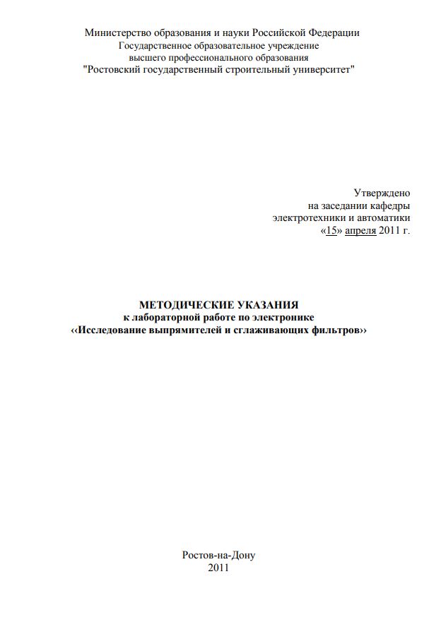 Предназначены для выполнения лабораторной работы по курсу “Электротехника и электроника” для студентов дневной и заочной формы обучения. Рассматриваются устройства и принципы действия полупроводниковых однофазных выпрямителей и фильтров. Излагается методика исследования наиболее распространенных выпрямителей и фильтров. Даются рекомендации по их применению.