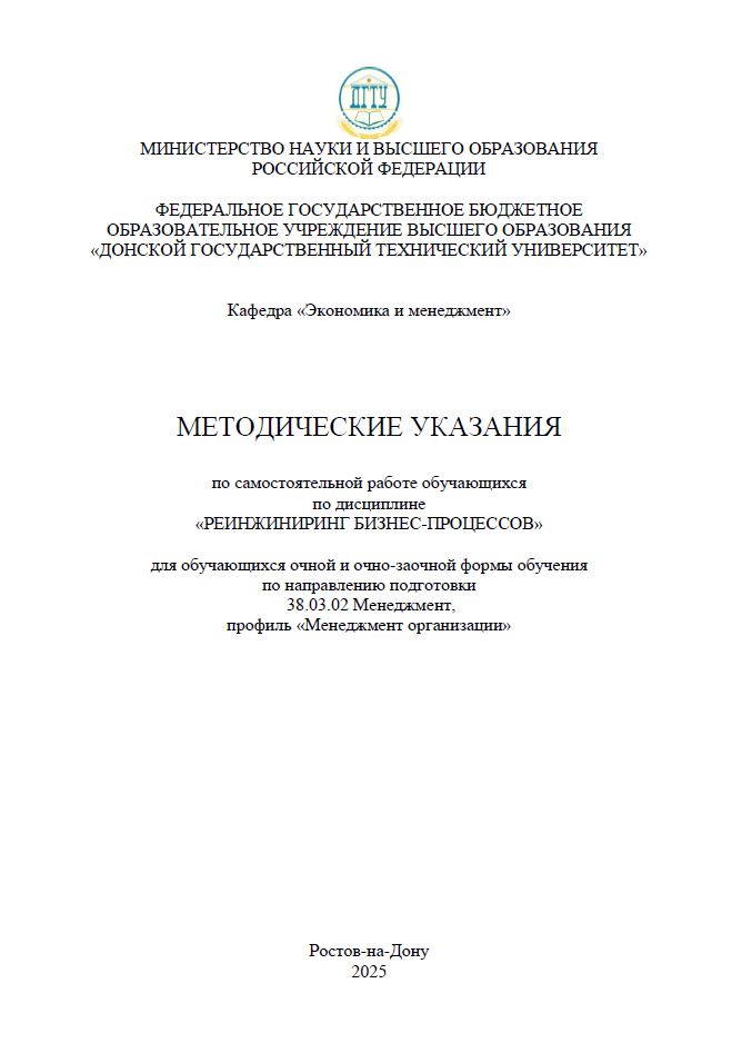 В методических указаниях содержатся рекомендации по самостоятельной работе обучающегося в ходе освоения дисциплины «Реинжиниринг бизнес-процессов», в том числе, по усвоению текущего учебного материала и подготовке к практическим занятиям, подготовке к текущему контролю и промежуточной аттестации, выполнению контрольной работы, а также используемым образовательным технологиям.
