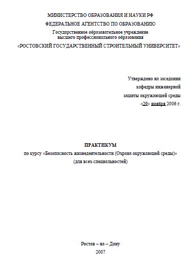 Рассчитаны на курс практических занятий по дисциплине «Безопасность жизнедеятельности (Охрана окружающей среды)» в объеме 17 часов для студентов всех специальностей всех форм обучения.