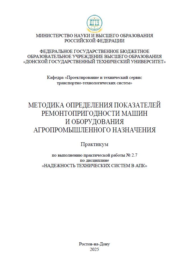 Кратко изложены теоретические вопросы, необходимые для успешного выполнения практической работы № 2.7 «Методика определения показателей ремонтопригодности машин и оборудования агропромышленного назначения», рабочее задание и контрольные вопросы для самопроверки.
