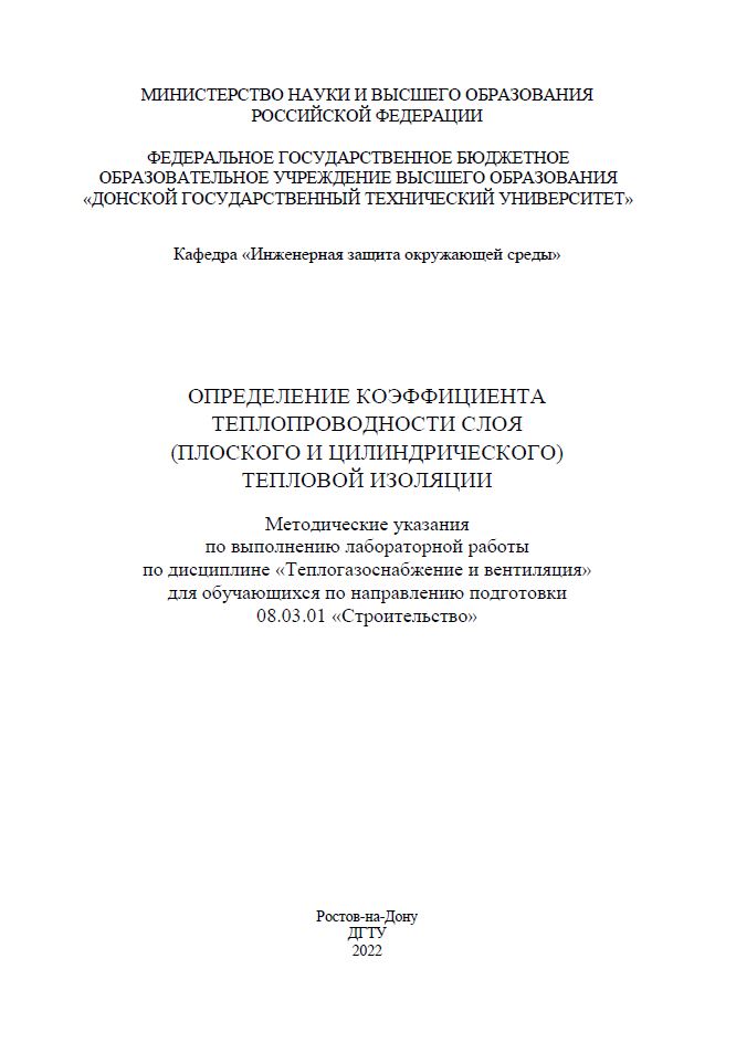 Методические указания определяют объем, состав и последовательность выполнения лабораторной работы. Содержат необходимый справочный и теоретический материал. В методических указаниях приводятся основные сведения о способе переноса тепла теплопроводностью, понятии коэффициента теплопроводности, принципе работы экспериментальной установки, методике определения коэффициента теплопроводности исследуемого материала.