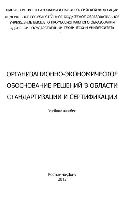 Учебное пособие предназначено для выполнения организационно-экономической части выпускных квалификационных работ по специальности «Стандартизация и сертификация», а также может представлять интерес для работников предприятий, в функциональные обязанности которых входят вопросы разработки стандартов организаций, предложений по управлению качеством и по организации работ по сертификации и аккредитации.