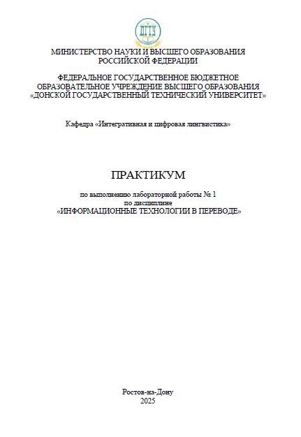 Кратко изложены теоретические вопросы, необходимые для успешного выполнения лабораторной работы, рабочее задание и контрольные вопросы для самопроверки. Предназначен для обучающихся очной и очно-заочной форм обучения по направлению подготовки: 45.05.01 Перевод и переводоведение, 45.03.02 Перевод и локализация.