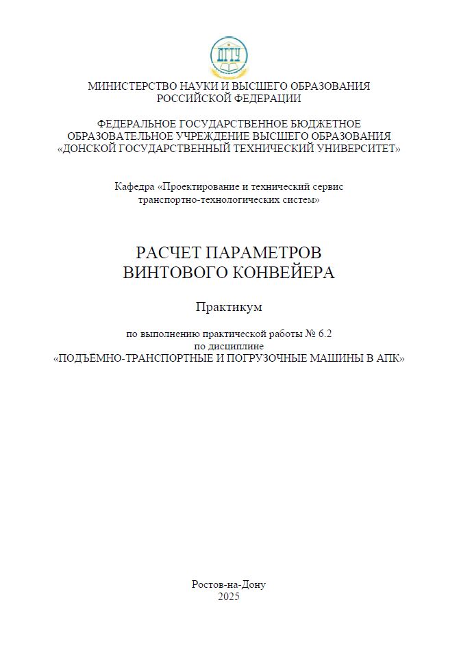 Кратко изложены теоретические вопросы, необходимые для успешного выполнения практической работы № 6.2 «Расчет параметров винтового конвейера», рабочее задание и контрольные вопросы для самопроверки.