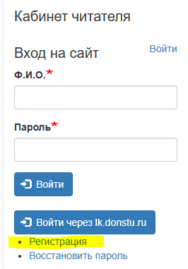 Перейти к регистрации: http://ntb.donstu.ru/user/register