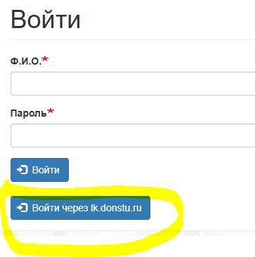 кнопкой единой авторизации (вход через логин и пароль сайта edu.donstu.ru)