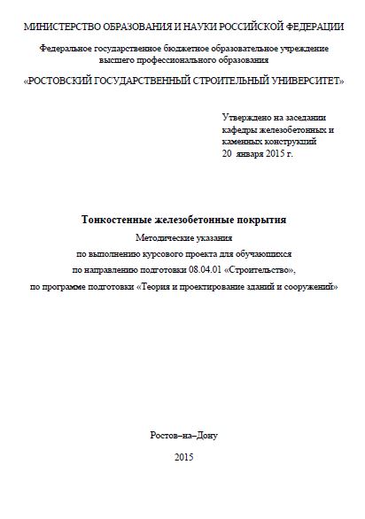 Тонкостенные железобетонные покрытия. Методические указания по выполнению курсового проекта для обучающихся по направлению подготовки 08.04.01 «Строительство», по программе подготовки «Теория и проектирование зданий и сооружений».